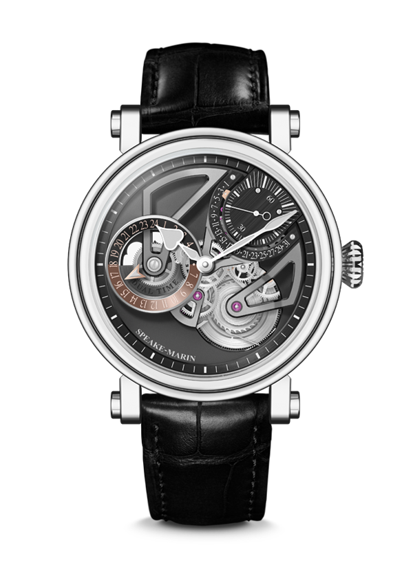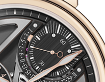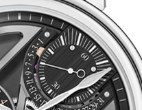 Hour Minutes et Seconds Small seconds and retrograde date at 1:30 Dual Time indication at 9 o’clock