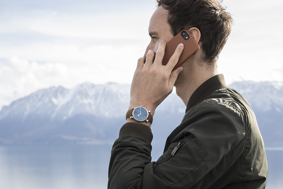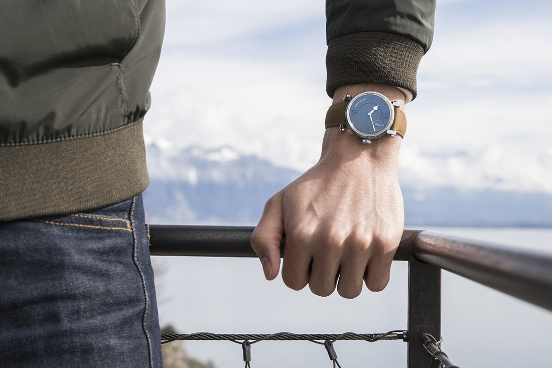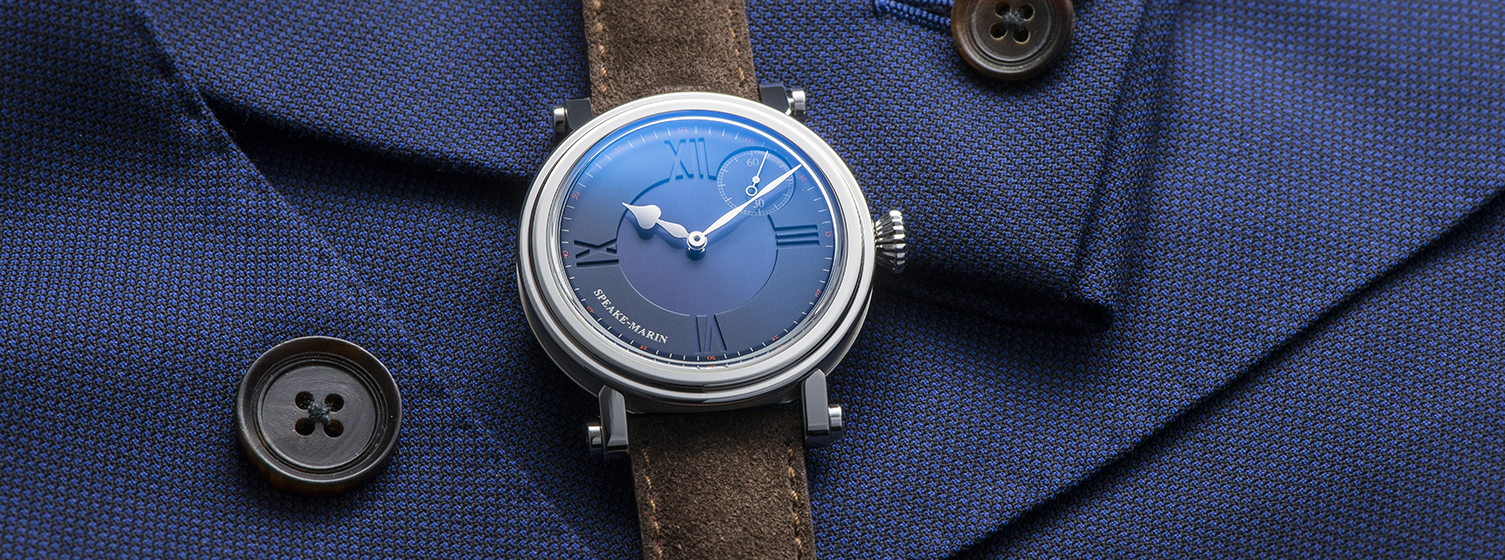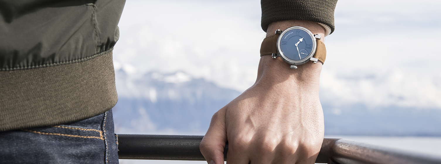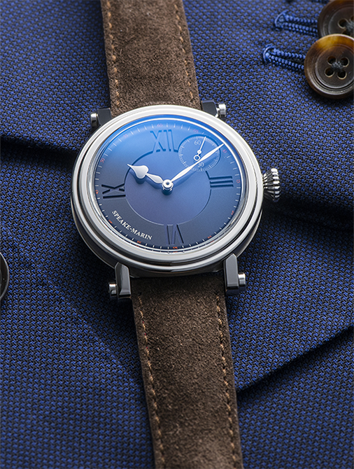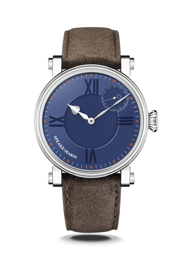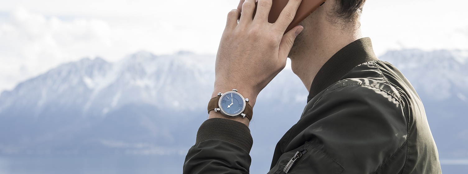 Two levels blue dial: polished finish in the middle and mat finish in the background. Heart-shaped rhodium plated hands.